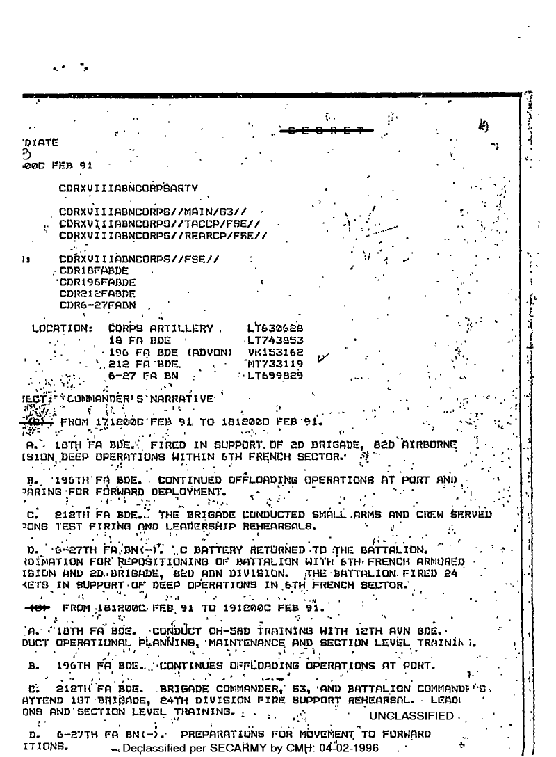 Folder Title = DUTY LOG 18 CORPS ARTY SITREPS G3 FEB 91