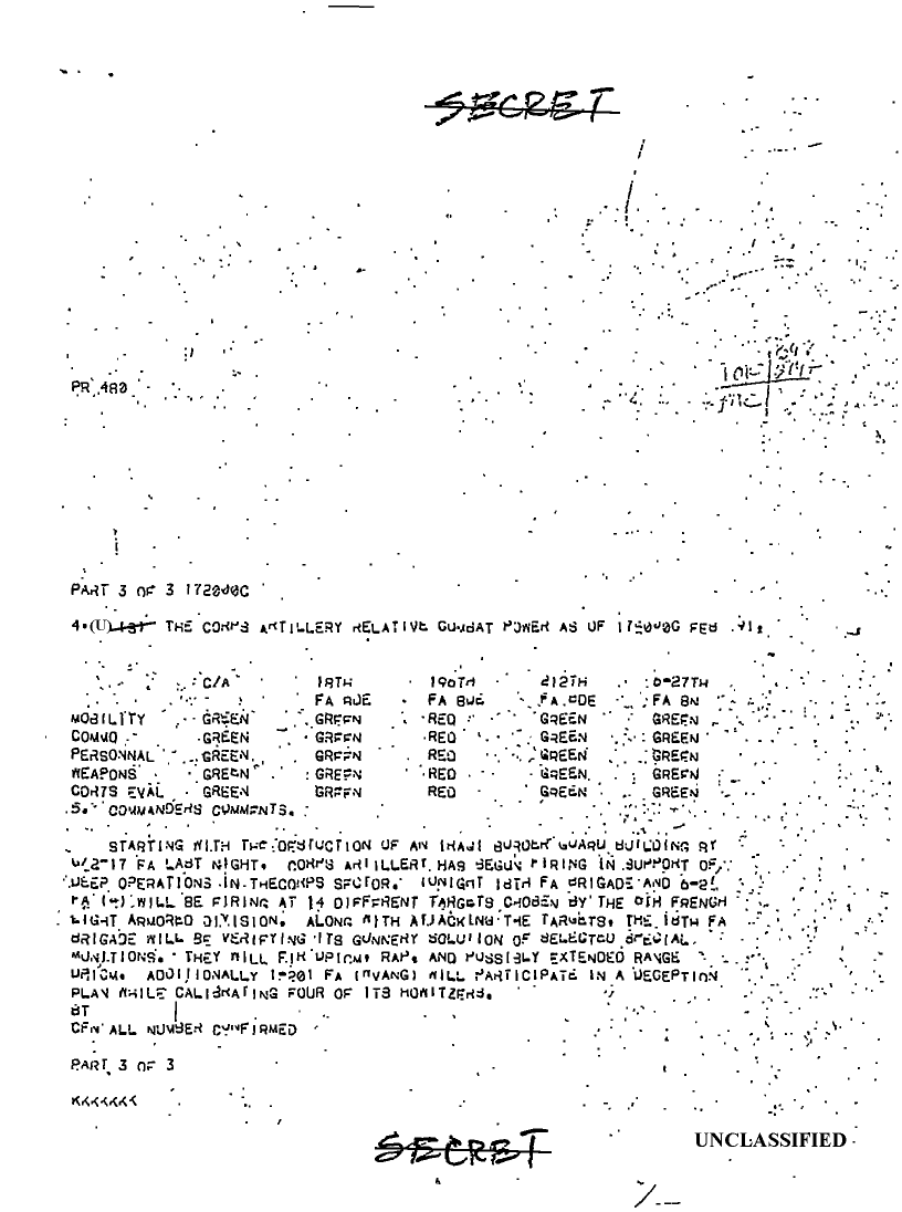 Folder Title = DUTY LOG 18 CORPS ARTY SITREPS G3 FEB 91