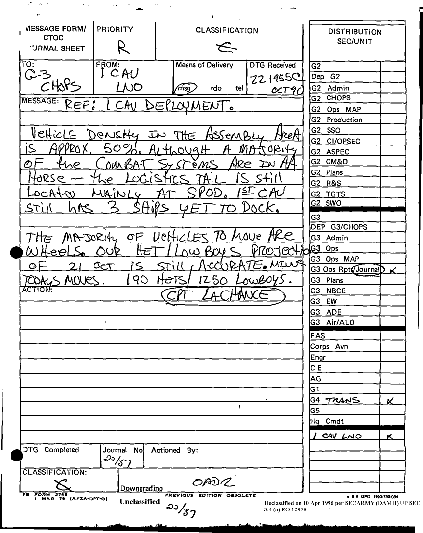 Subject = DAILY STAFF JOURNAL OR DUTY OFFICERS LOG 22 OCT 90