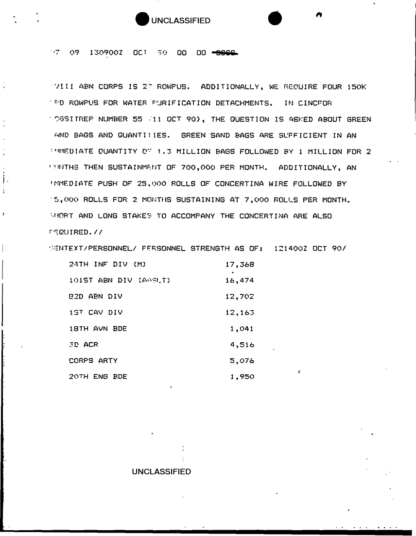 Subject = DAILY STAFF JOURNAL OR DUTY OFFICERS LOG 13 OCT 90