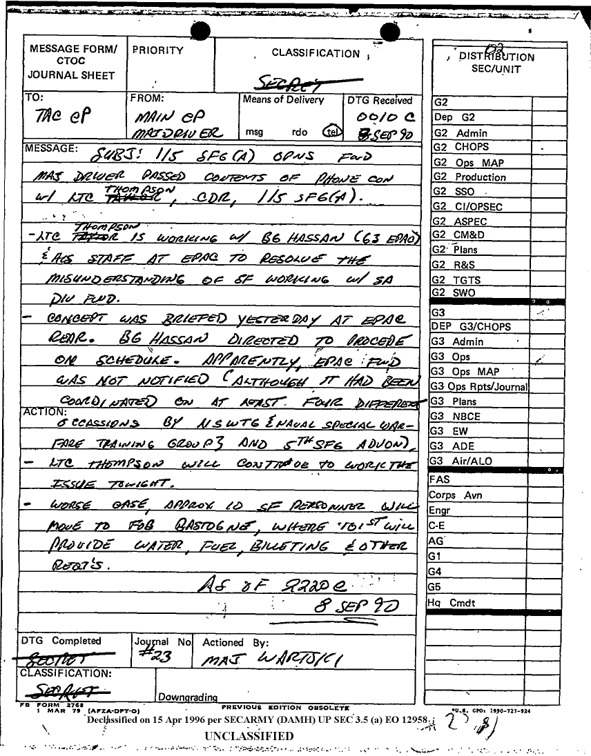 Document 47 f:/Week-14/BX000007/DUTY LOG G3 TAC CP 7 SEP 90/daily staff journal or duty officers log 7 sep t:04179616012077