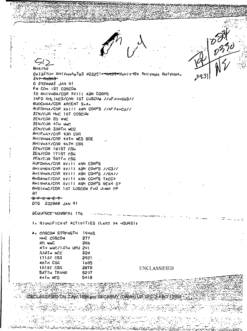 Document 10 f:/Week-08/BX000015/DUTY LOG 1 COSCOM SITREPS G3 JAN 91/significant activities sequence 177:04179616012020