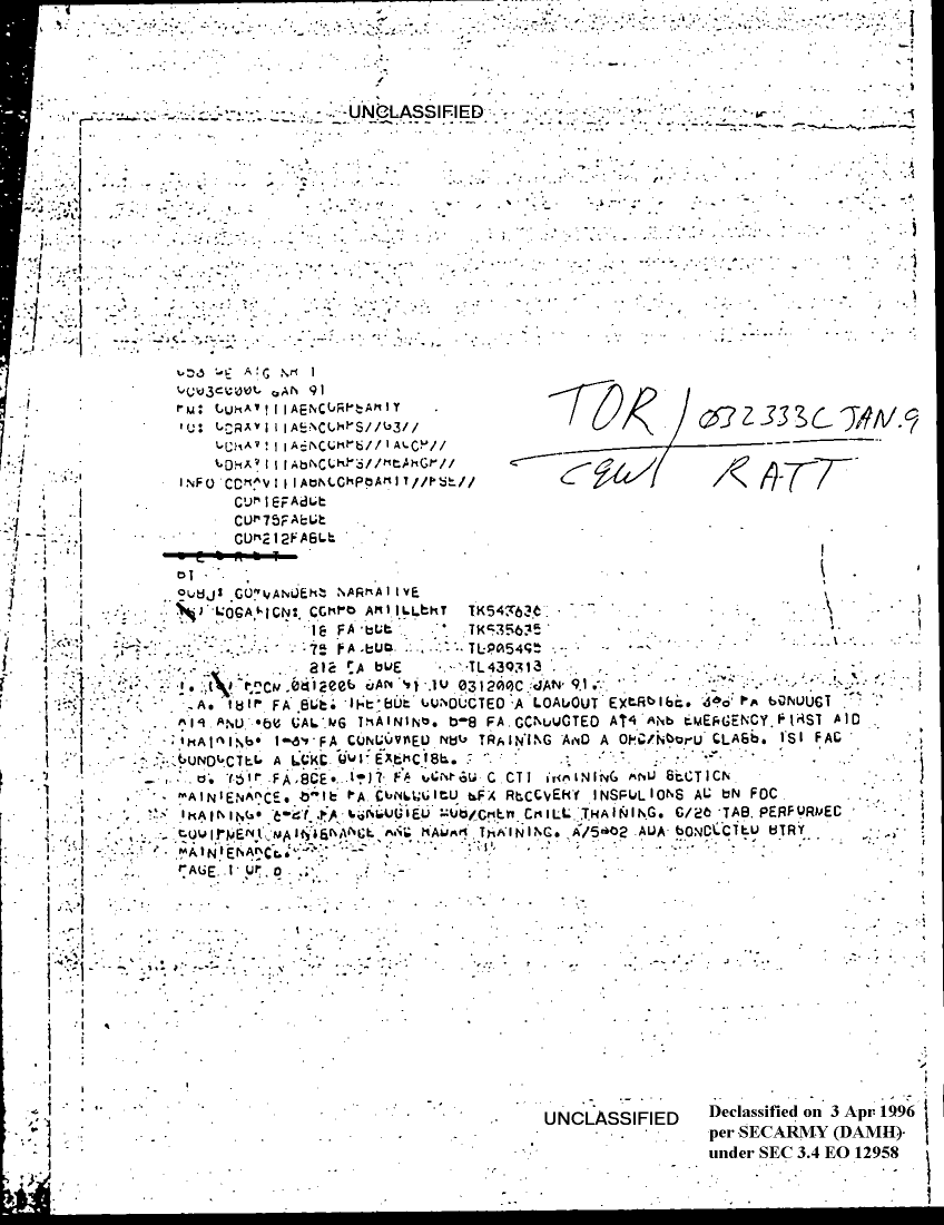 Folder Title = DUTY LOG 18 CORPS ARTY SITREP G3 JAN 91