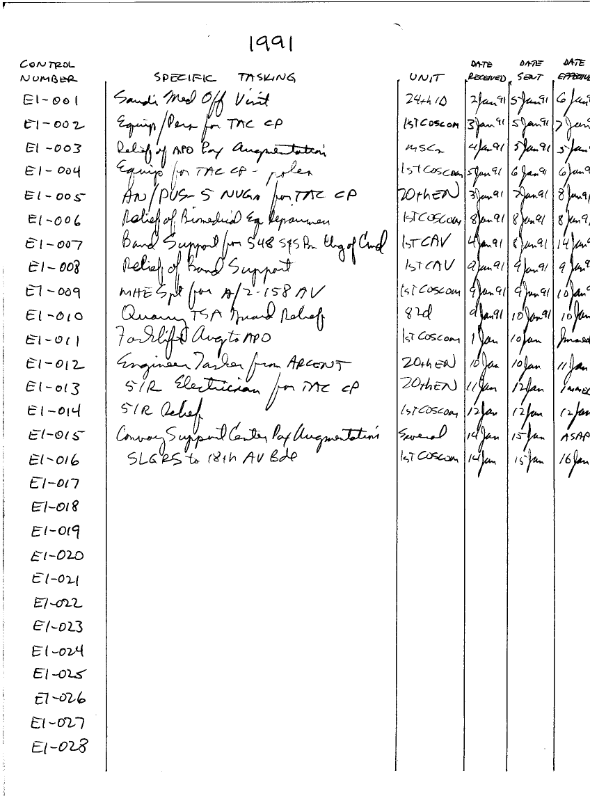 Subject = SPECIFIC TASKINGS 1991