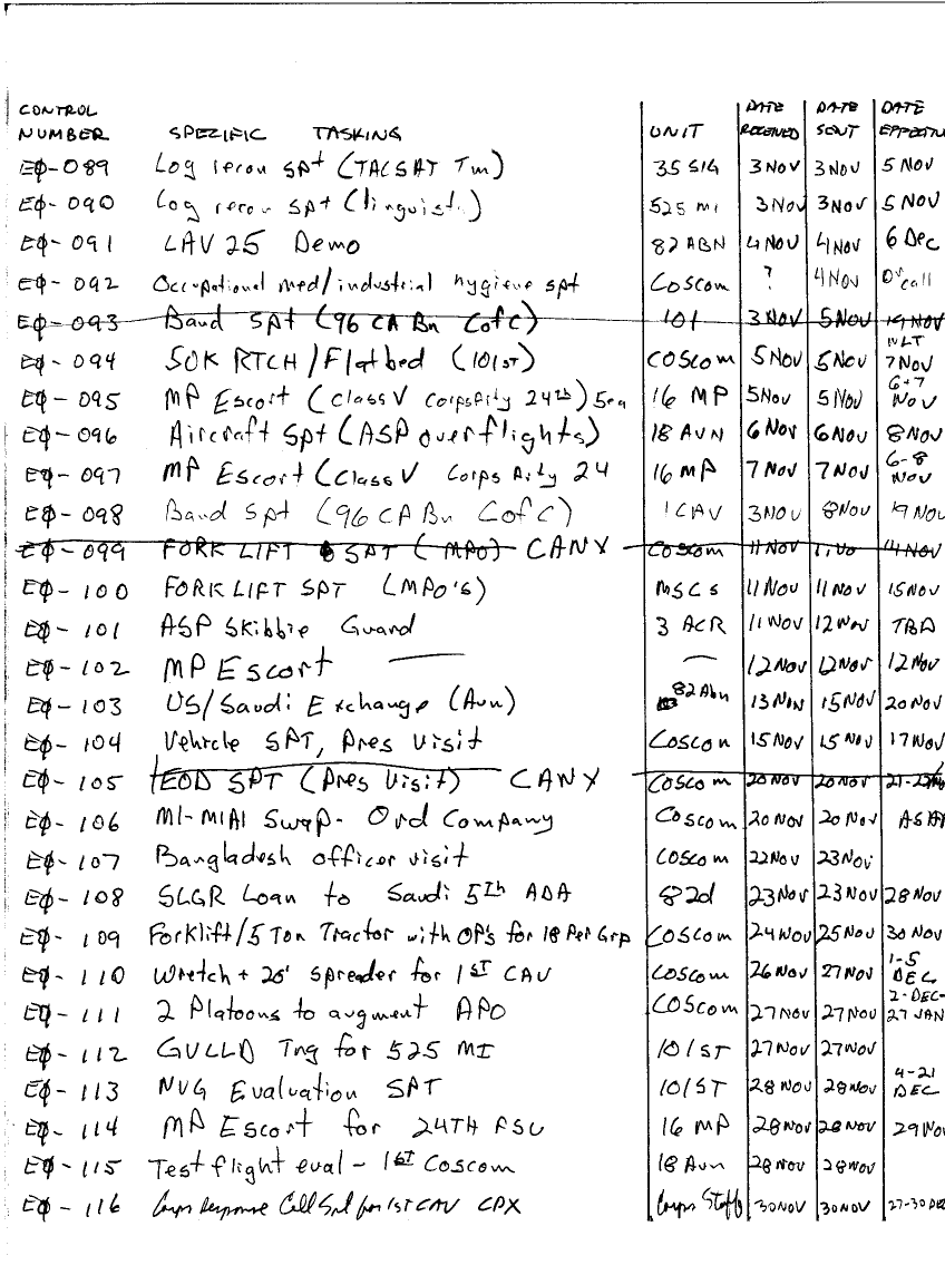 Document 7 f:/Week-08/BX000018/DUTY LOG CORPS TASKING OFFFICER FILES MASTER CON/specific taskings 1991:0417961601204