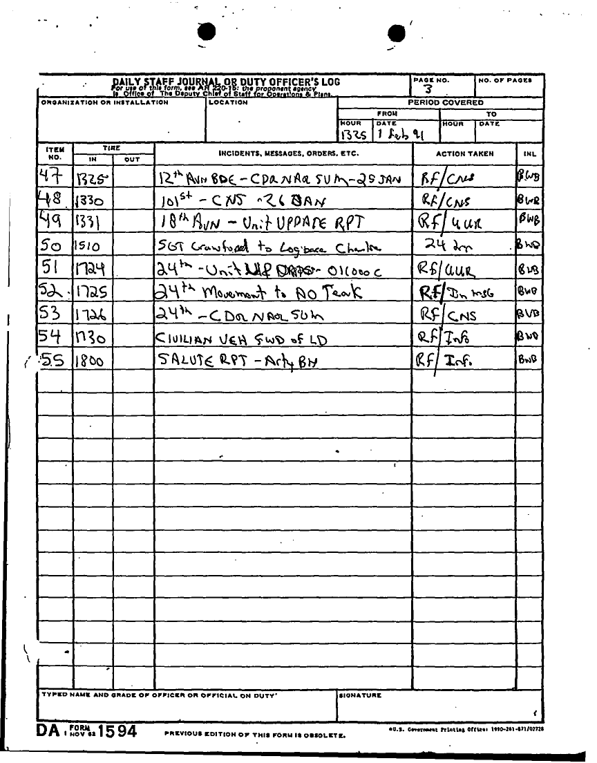 Document 17 f:/Week-12/BX000024/DUTY LOG G3 TAC CP 31 JAN 91/daily staff journal or duty officers log:041796160120115