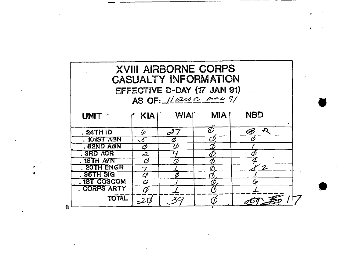 Document 6 f:/Week-12/BX000004/PERSONNEL STATUS REPORTS 1-10 MARCH 91/casualty information:04179616012032