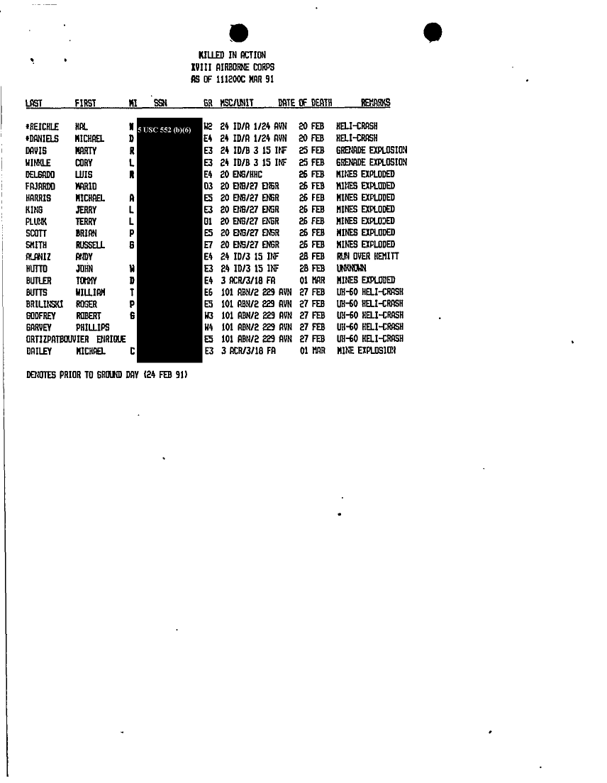 Document 6 f:/Week-12/BX000004/PERSONNEL STATUS REPORTS 1-10 MARCH 91/casualty information:04179616012032