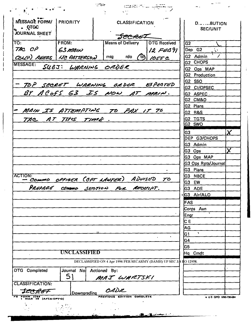 Document 56 f:/Week-12/BX000024/DUTY LOG G3 TAC CP 11 FEB 91/daily staff journal:04179616012033