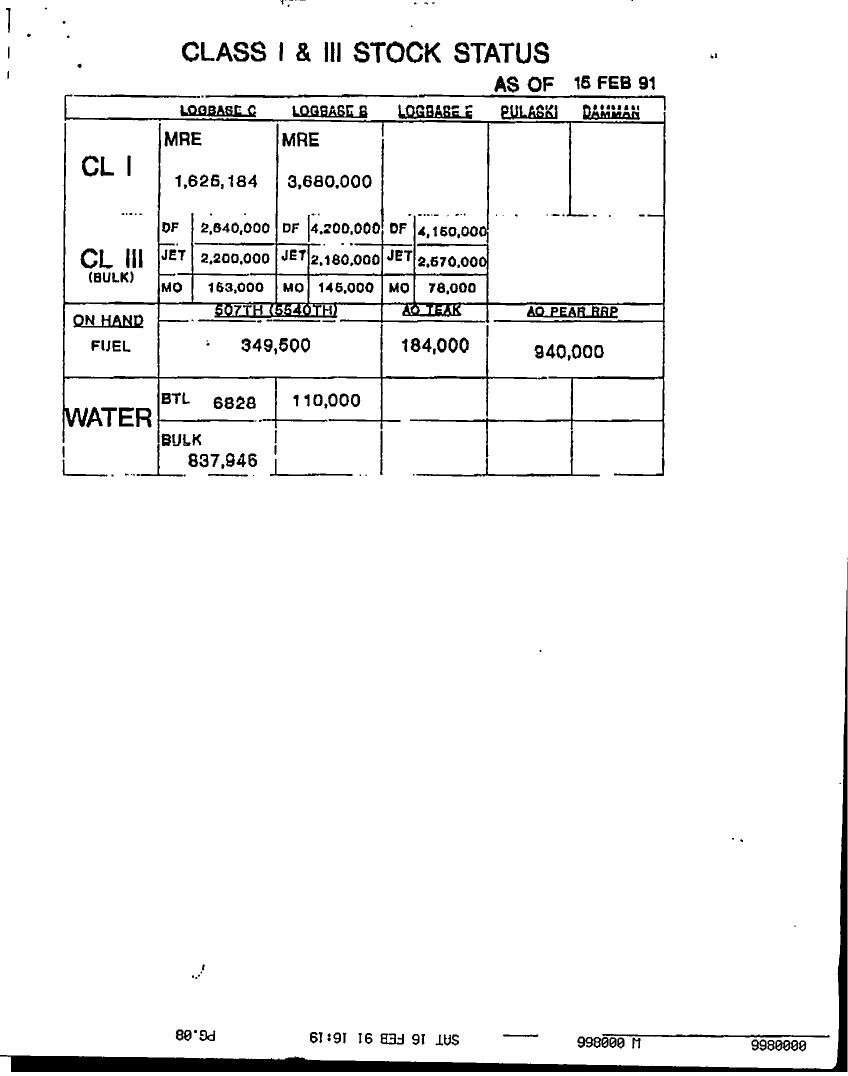 Document 10 f:/Week-12/BX000024/DUTY LOG G3 TAC CP 15 FEB 91/critical imagery report status:04179616012035