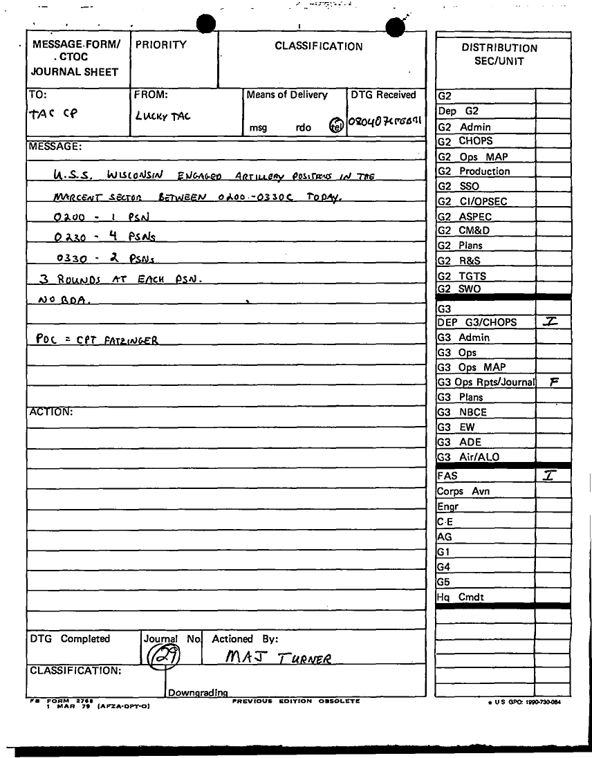 Document 25 f:/Week-12/BX000024/DUTY LOG G3 TAC CP 7 FEB 91/daily staff journal or duty officers log:04179616012036