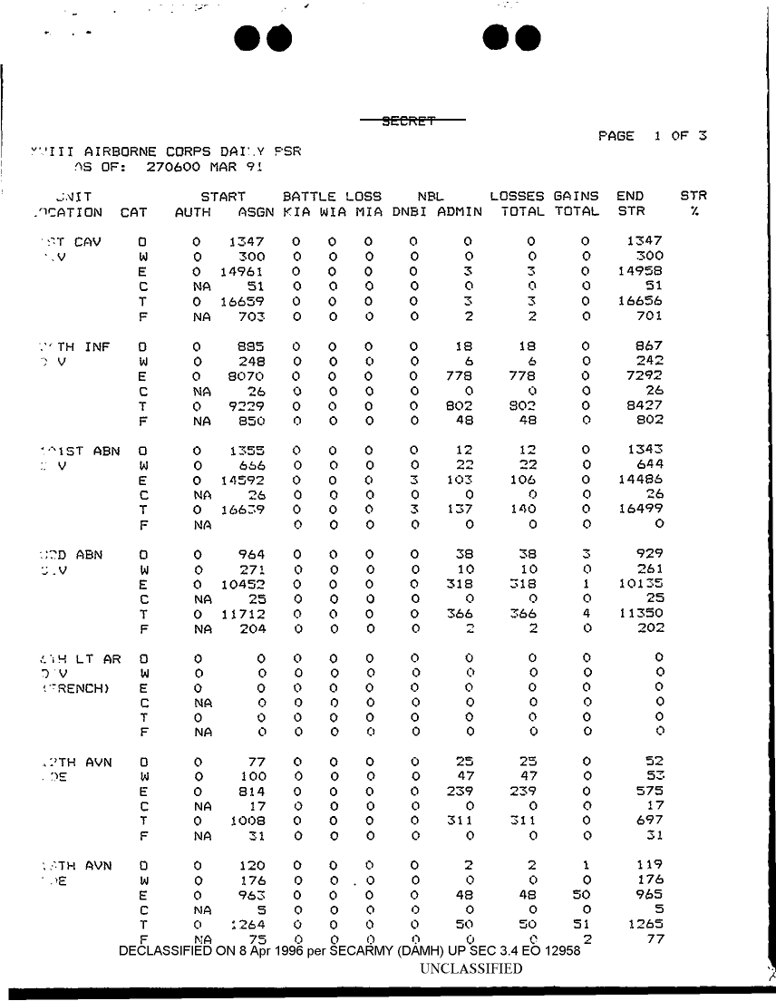 Document 3 f:/Week-12/BX000004/PERSONNEL STATUS REPORTS 21-27 MARCH 91/xviii airborne corps daily psr:04179616012043