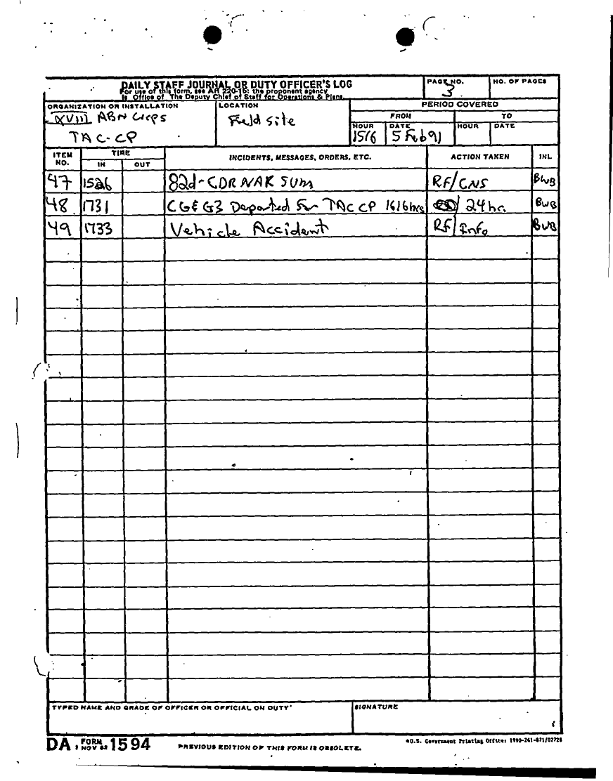 Folder Title = DUTY LOG G3 TAC CP 4 FEB 91