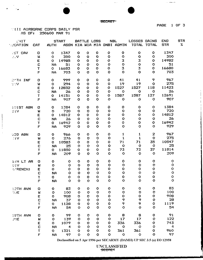 Document 3 f:/Week-12/BX000004/PERSONNEL STATUS REPORTS 21-27 MARCH 91/xviii airborne corps daily psr:04179616012053