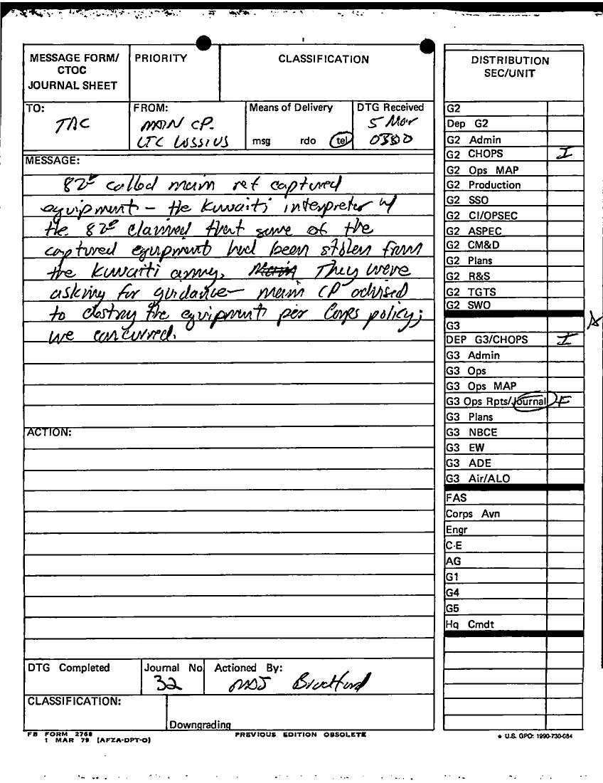 Document 31 f:/Week-12/BX000024/DUTY LOG G3 TAC CP 4 MAR 91/daily staff journal or duty officers log 4 to 5 :04179616012058