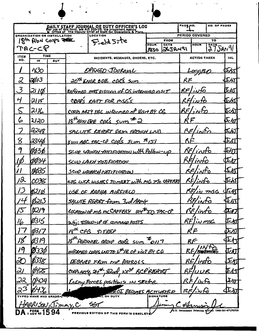Document 55 f:/Week-12/BX000024/DUTY LOG G3 TAC CP 26 JAN 91/daily staff journal or duty officers log:04179616012061