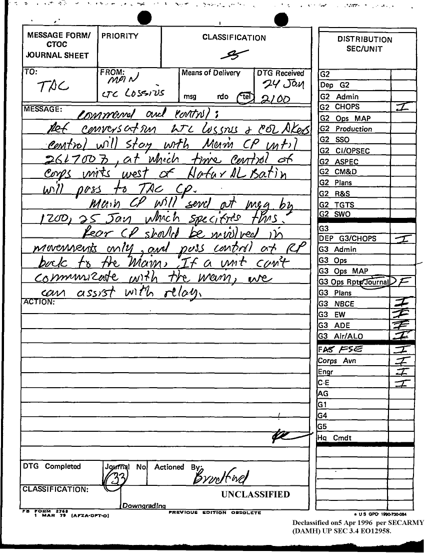Document 13 f:/Week-12/BX000024/DUTY LOG G3 TAC CP 24 JAN 91/daily staff journal or duty officers log:04179616012067