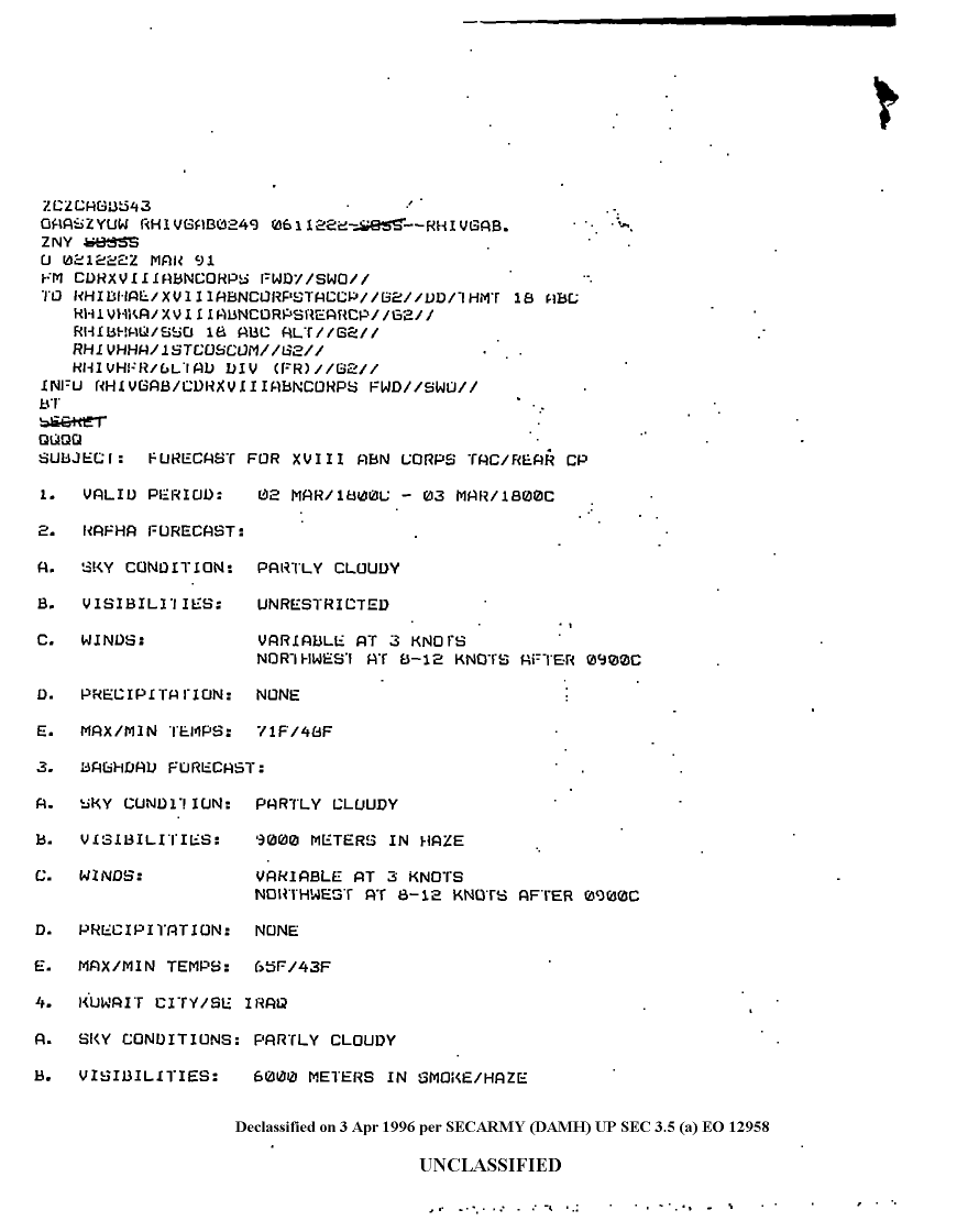 Document 9 f:/Week-10/BX000017/DUTY LOG MAR 91/forecast for xviii abn corps tac rear cp:04179616012085