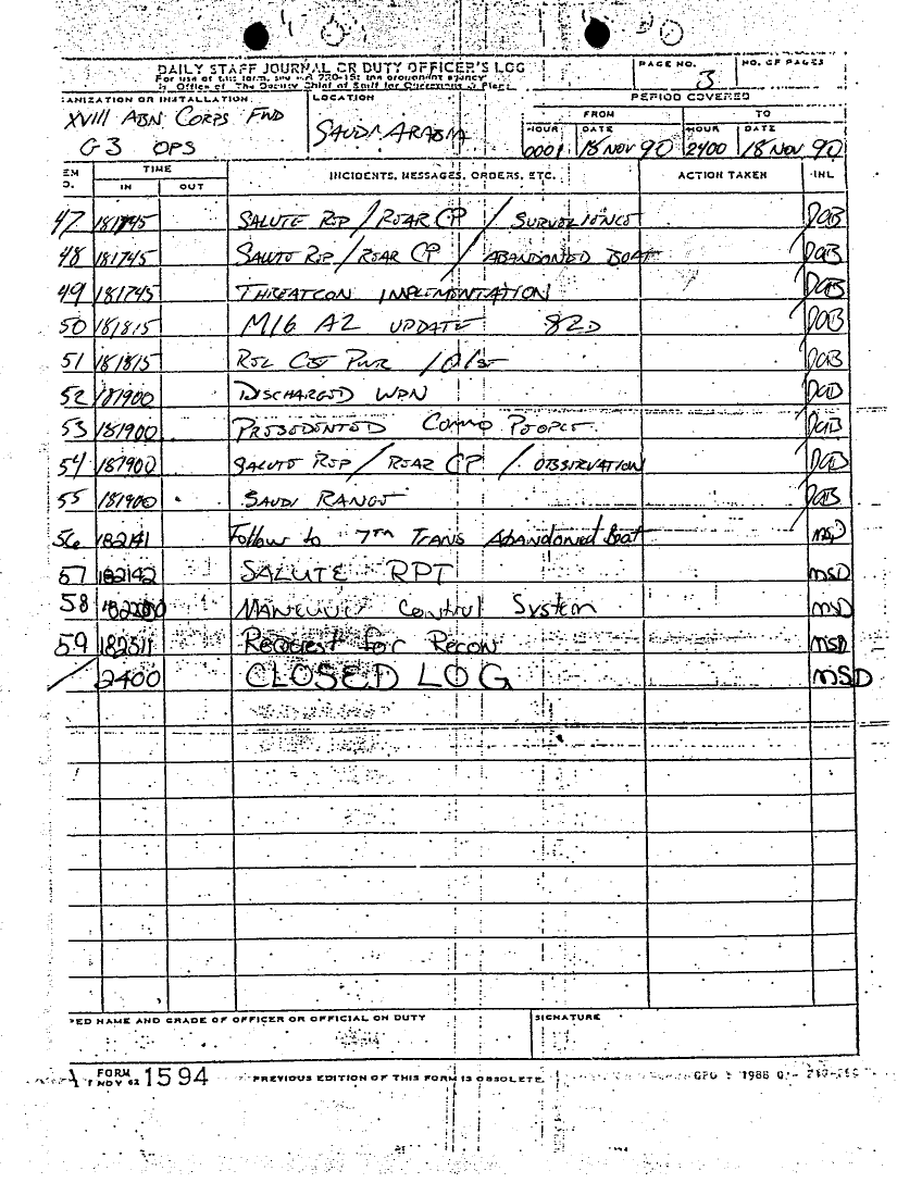 Document 81 f:/Week-12/BX000030/DUTY LOG MAIN CP G3 18 NOV 90/daily staff journal or duty officers log:04179616012086
