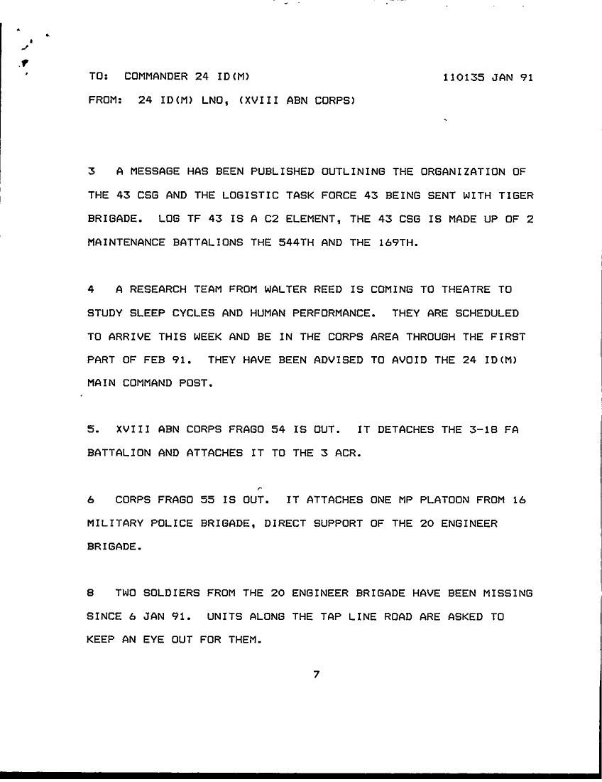 Folder Title = LNO REPORTS 24TH ID JAN 91