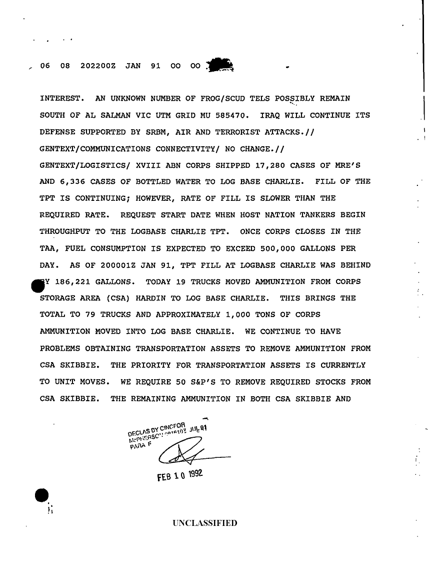 Document 8 f:/Week-14/BX000042/SITUATION REPORTS JAN 91/sitrep from 19 jan to 20 jan 91:05039613321988