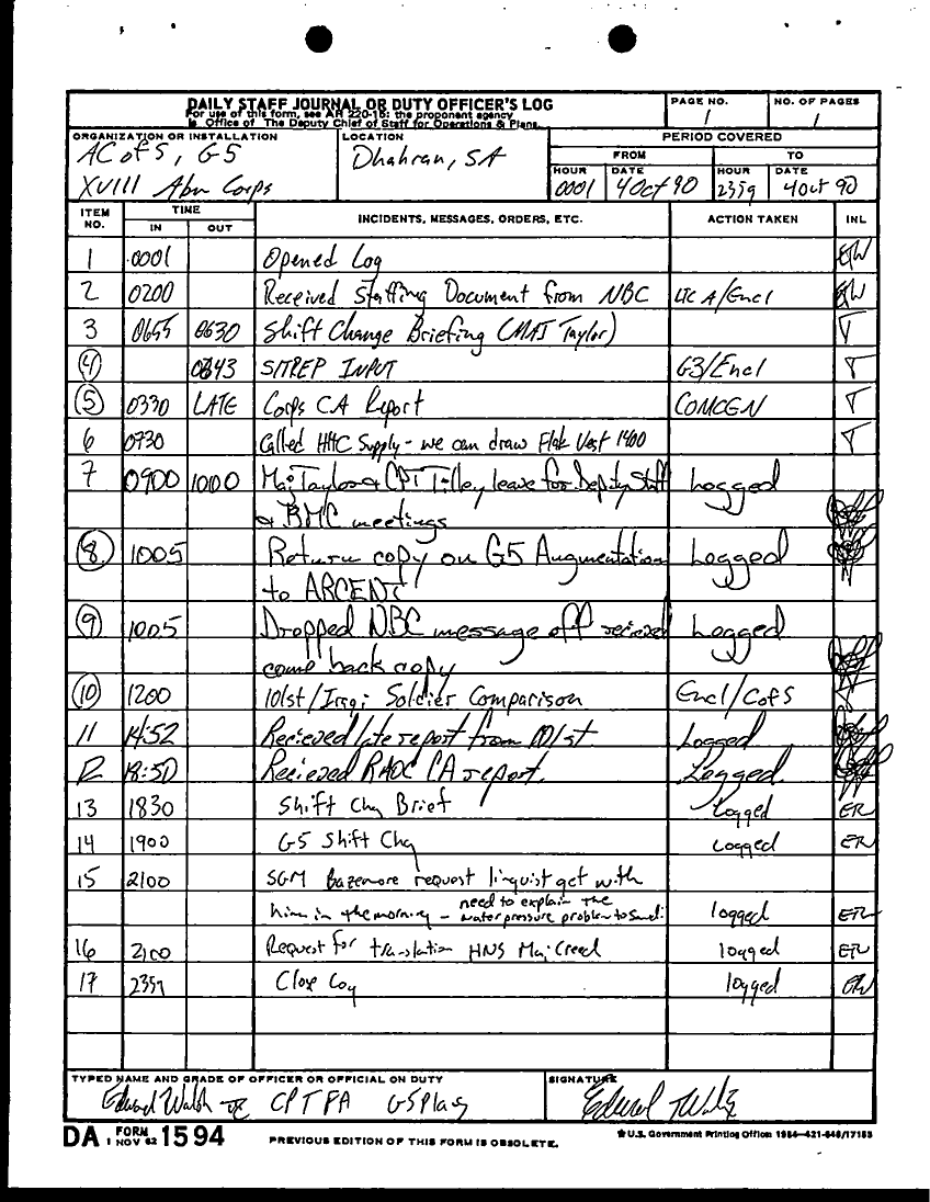Document 23 f:/Week-13/BX000005/DUTY LOG G5 4 OCT 90/daily staff journal or duty officers log 4 oct 9:05039613321945