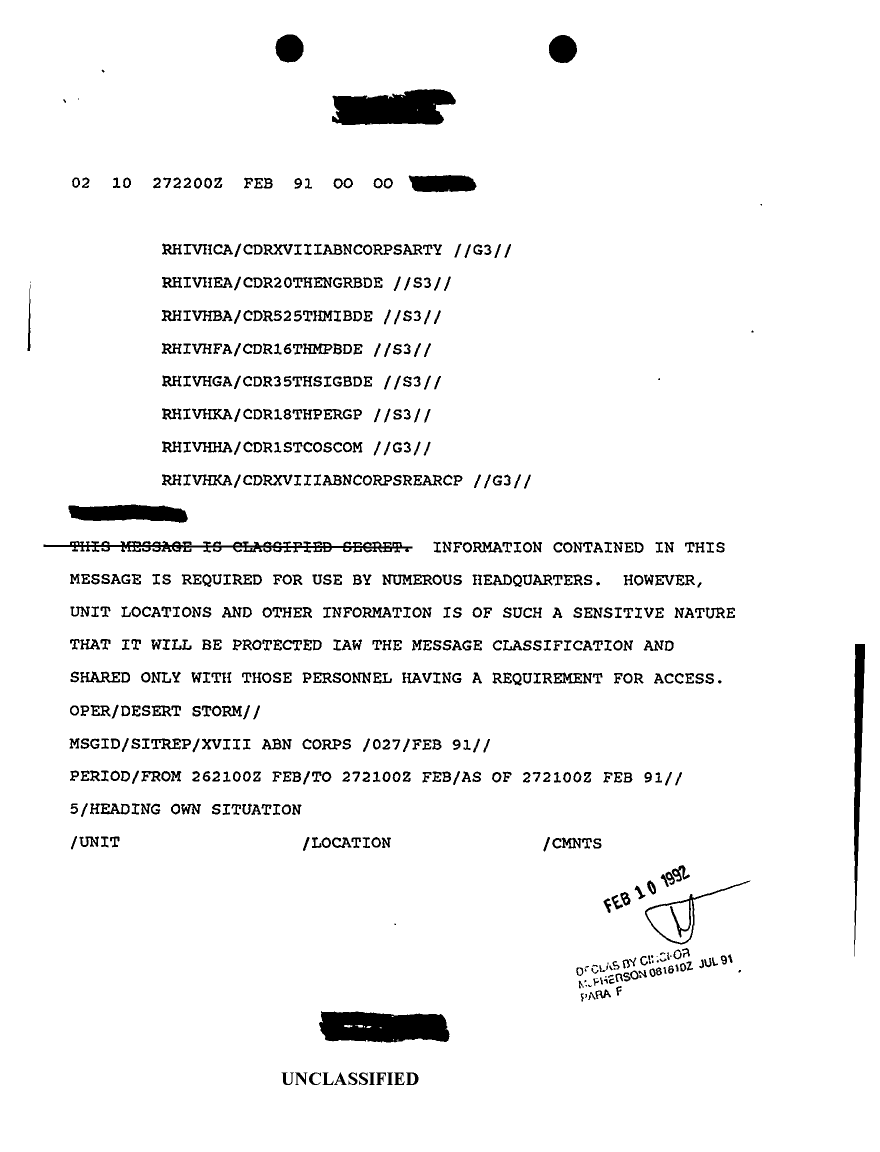 Document 9 f:/Week-14/BX000042/SITUATION REPORTS FEB-MAR 91/sitrep xviii abn corps 027 feb 91:05039613321961