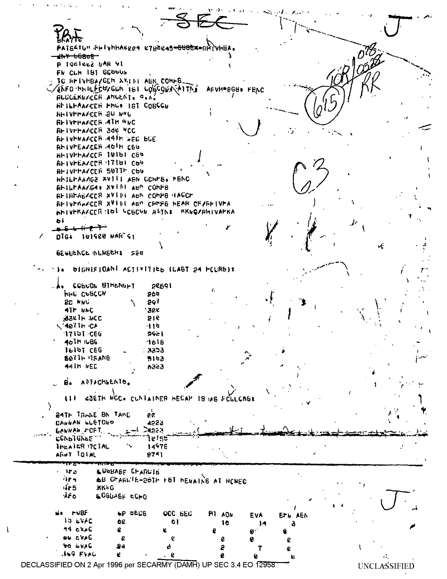 Folder Title = DUTY LOG 1 COSCOM SITREPS G3 MAR 91