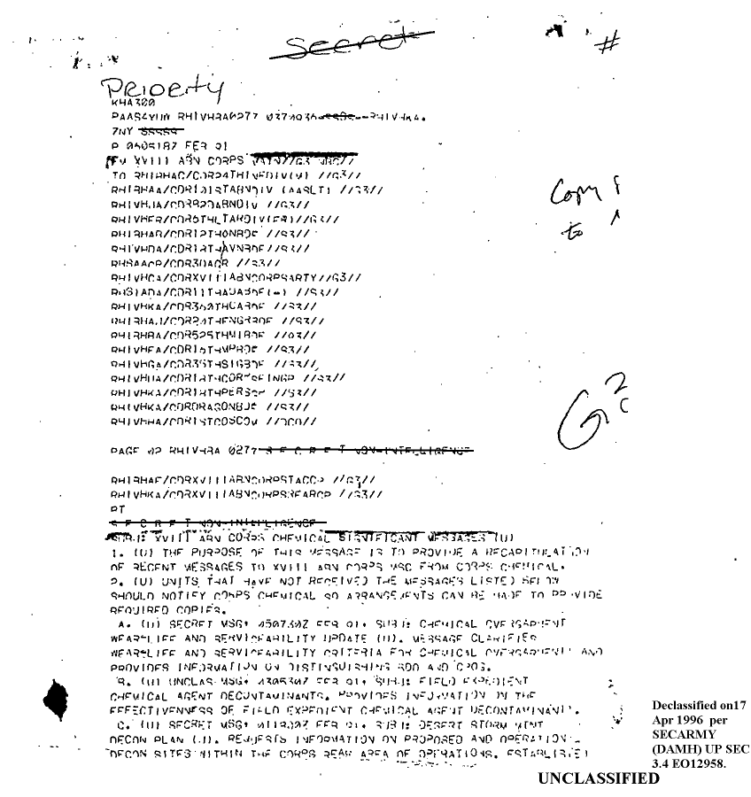 Document 2 f:/Week-10/BX000020/DUTY LOG G3 REAR MESSAGES 6 FEB - 19 FEB 91/xviii abn corps chemical significant messages:05039613321951