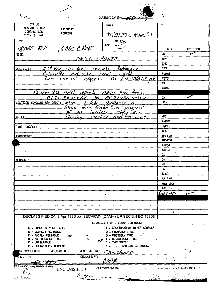 Document 1 f:/Week-10/BX000020/DUTY LOG G3 REAR MSG LOG MAY 91 FILE 2 OF 2/message form ctoc journal sheet 15 mar 91:05039613321917