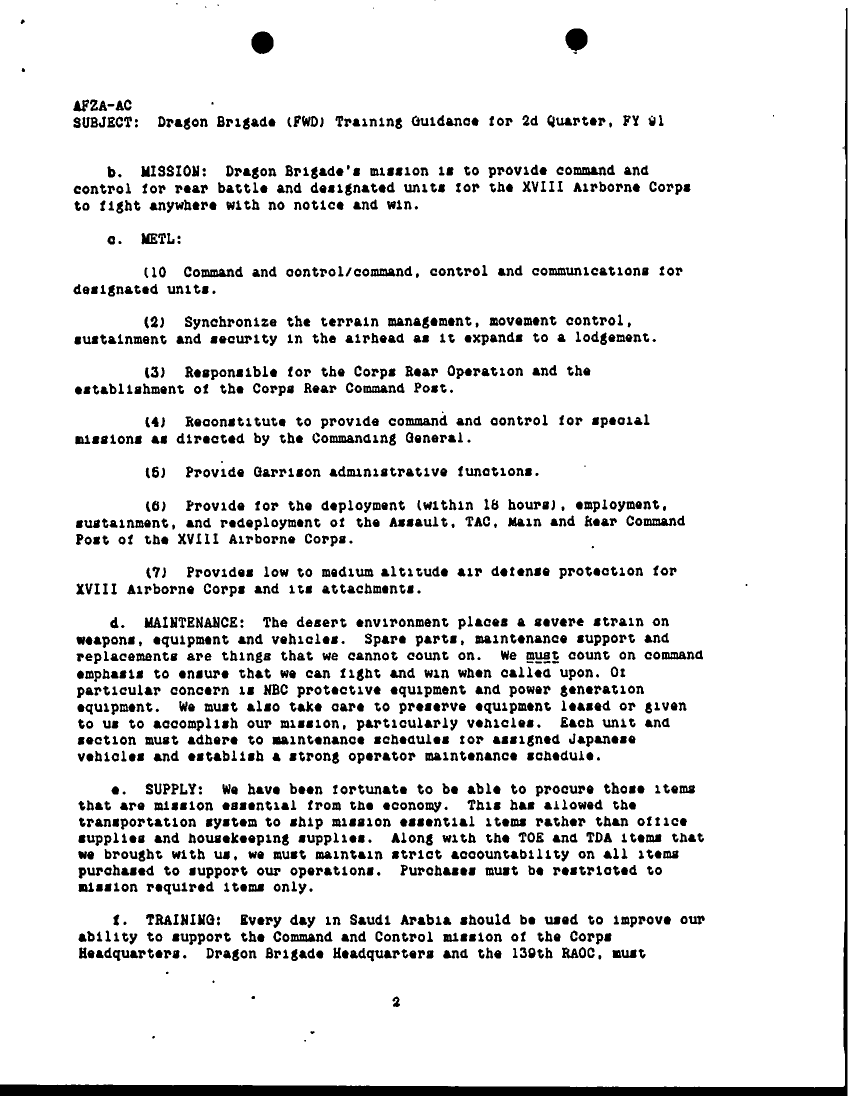 Document 29 f:/Week-16/BX000050/MISC DOCUMENTS DEC 90/dragon brigade training guidance for 2d quarter :05309618571748