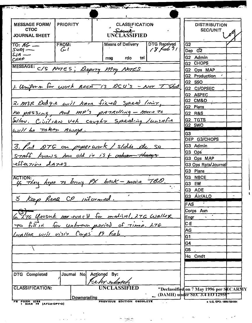 Document 31 f:/Week-16/BX000006/DUTY LOG G1 11-20 FEB 91/daily staff journal or duty officers log:05309618571751