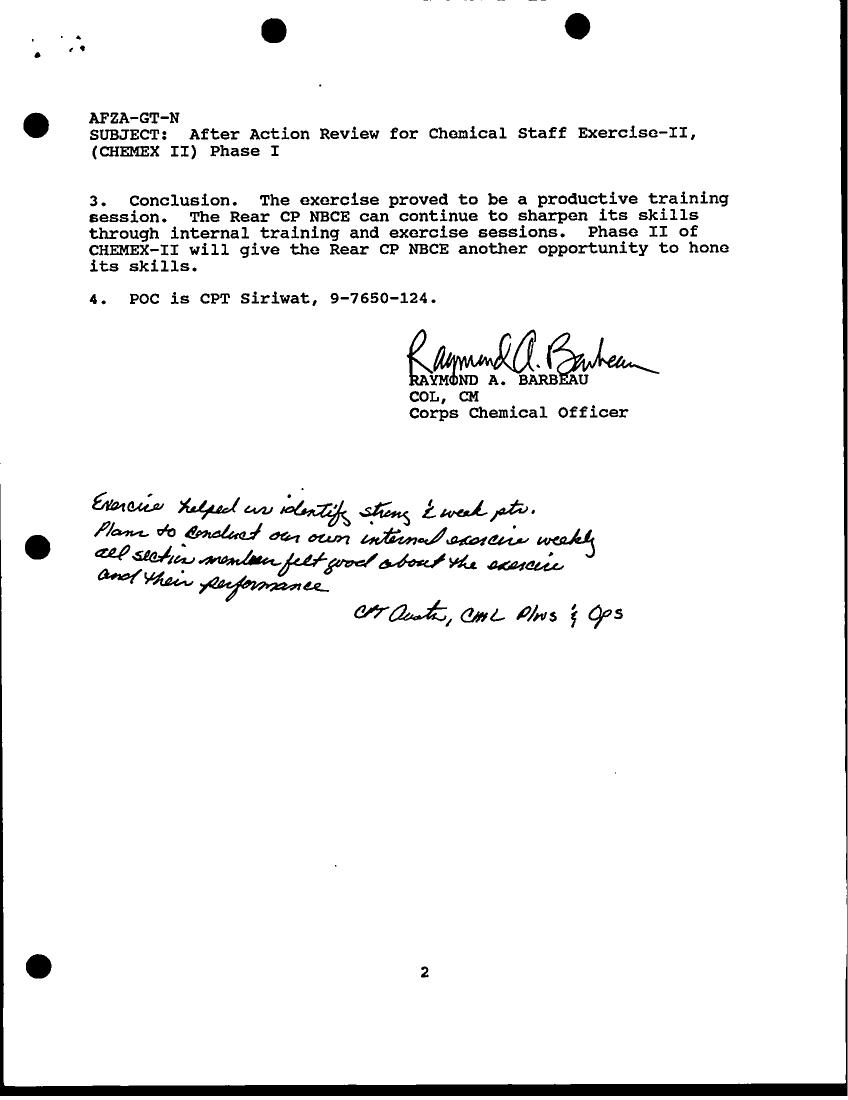 Document 2 f:/Week-16/BX000054/DUTY LOG REAR CP G3 20 DEC 90/after action report for chemical staff:05309618571752