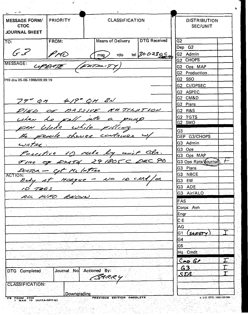 Document 12 f:/Week-16/BX000053/DUTY LOG G3 MAIN CP 29 DEC 90/daily staff journal or duty officers log:05309618571745