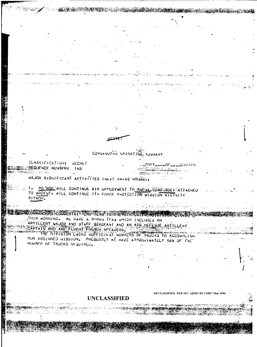 Document 44 f:/Week-08/BX000015/DUTY LOG 82 AB DIV SITREPS G3 JAN 91/commanders narrative summary:05309618571721