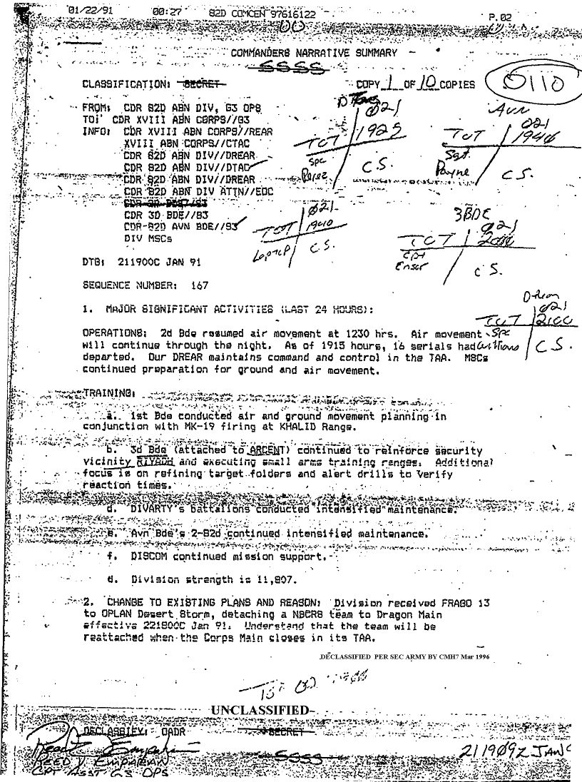 Document 44 f:/Week-08/BX000015/DUTY LOG 82 AB DIV SITREPS G3 JAN 91/commanders narrative summary:05309618571721