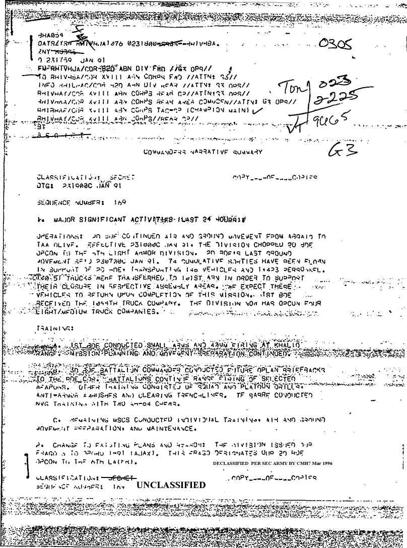 Folder Title = DUTY LOG 82 AB DIV SITREPS G3 JAN 91