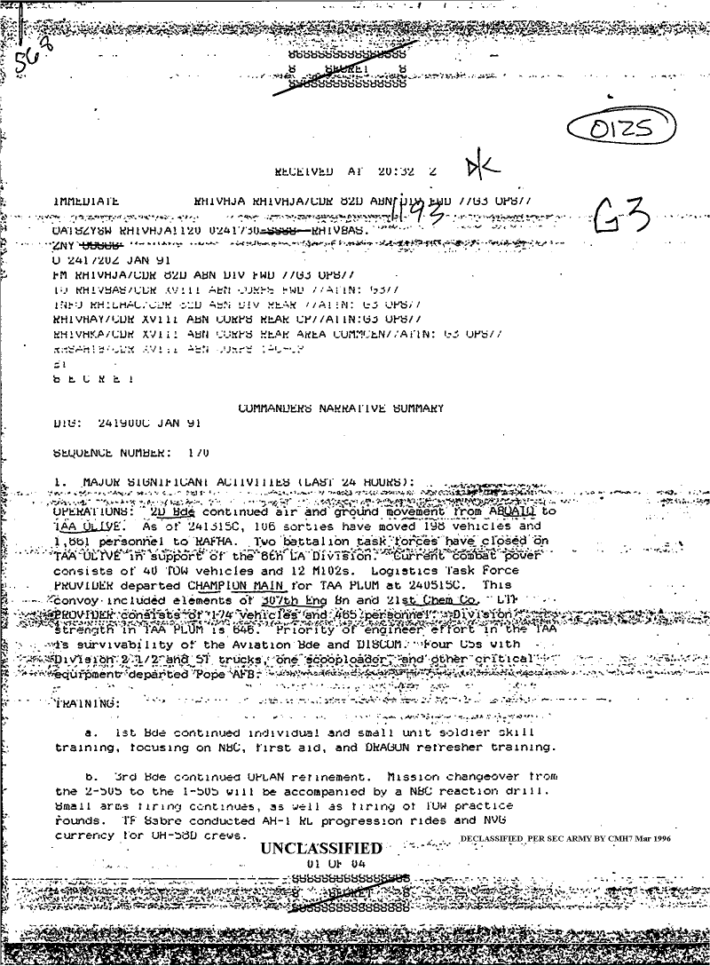 Folder Title = DUTY LOG 82 AB DIV SITREPS G3 JAN 91