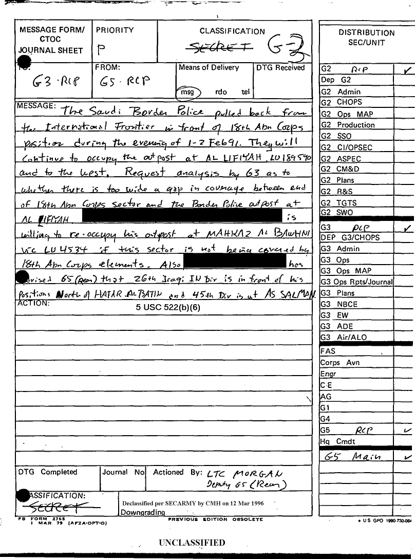 Document 14 f:/Week-09/BX000019/DUTY LOG G3 REAR 4 FEB 91/message form:05319611394110