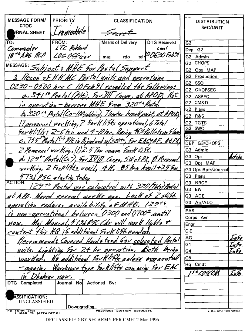 Folder Title = DUTY LOG G3 REAR 13 FEB 91