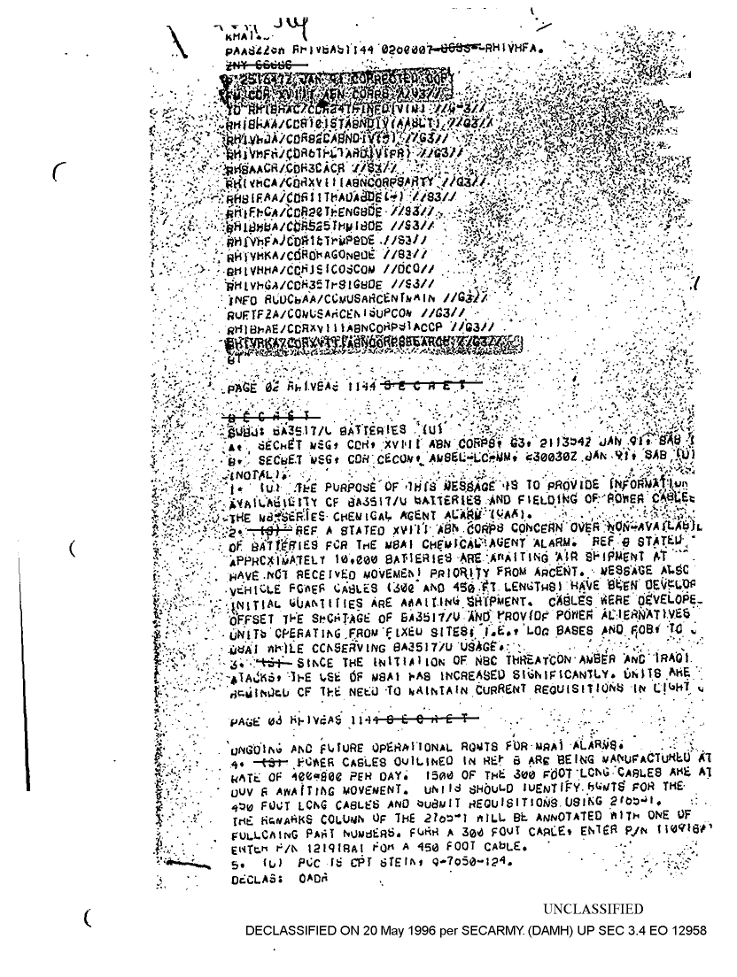 Document 1 f:/Week-10/BX000020/DUTY LOG G3 REAR MESSAGES 20 JAN 5 FEB 91/message ba3517 batteries:05319611394123