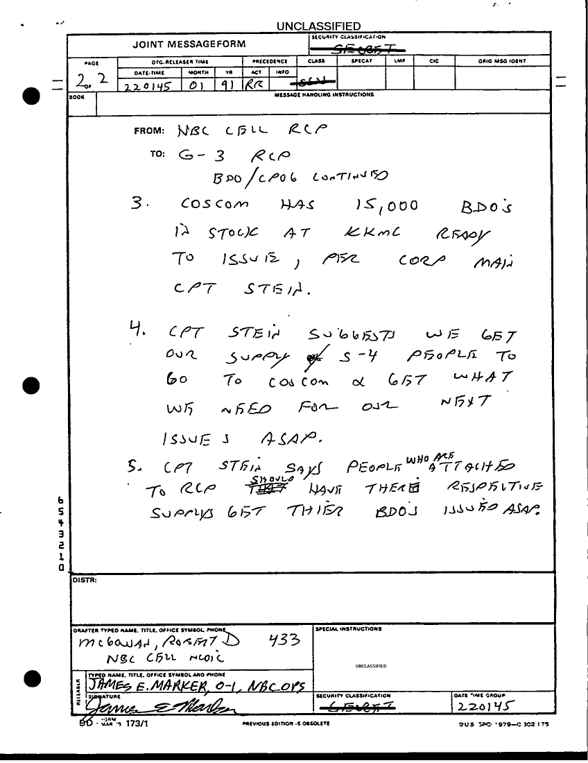 Folder Title = DUTY LOG G3 REAR 22 JAN 91