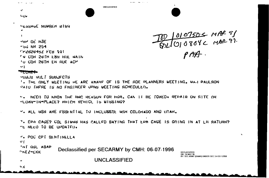 Folder Title = REAR CP FILE 20 EN BDE 1 2 MAR 91