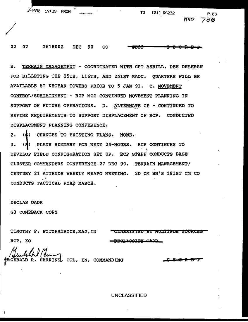 Document 2 f:/Week-18/BX000038/DUTY LOG REAR CP SITREPS G3 DEC 90/cdr narrative summary sequence no 0088:06079615285224