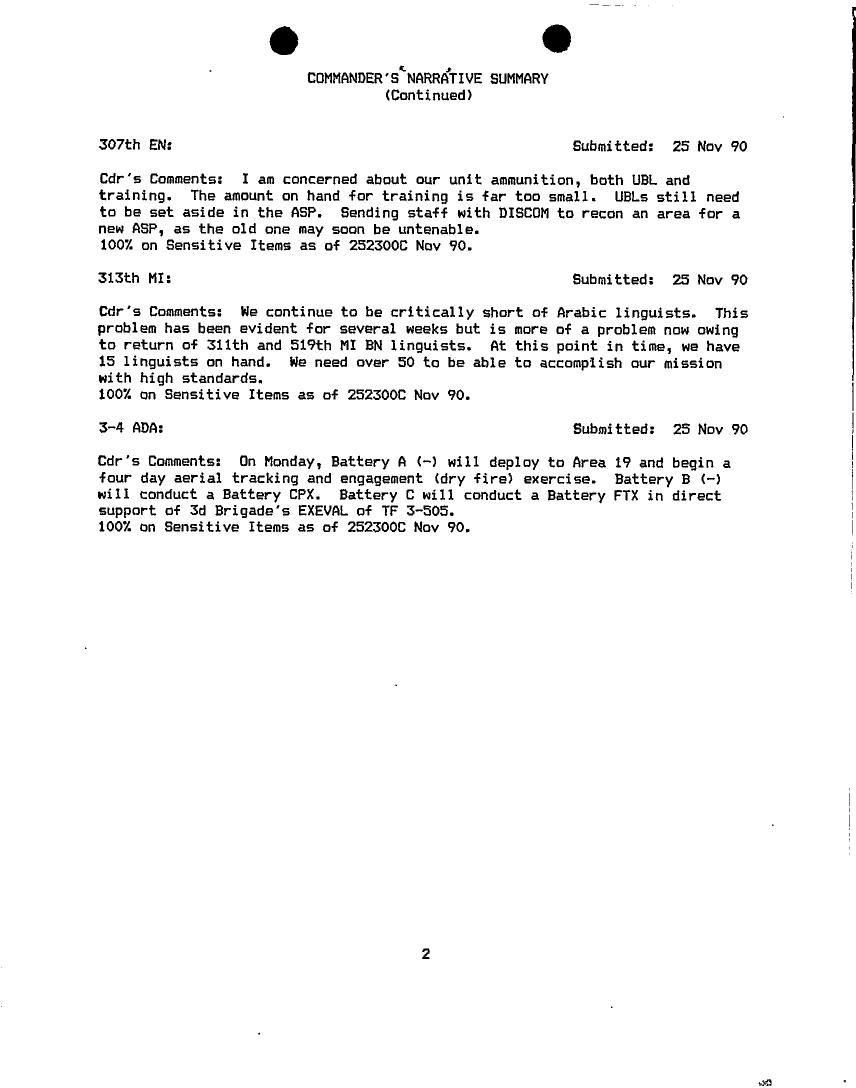 Document 75 f:/Week-18/BX000014/COMMAND REPORTS NOV 92 - 8/commanders narrative summaries nov 90:06079615285229