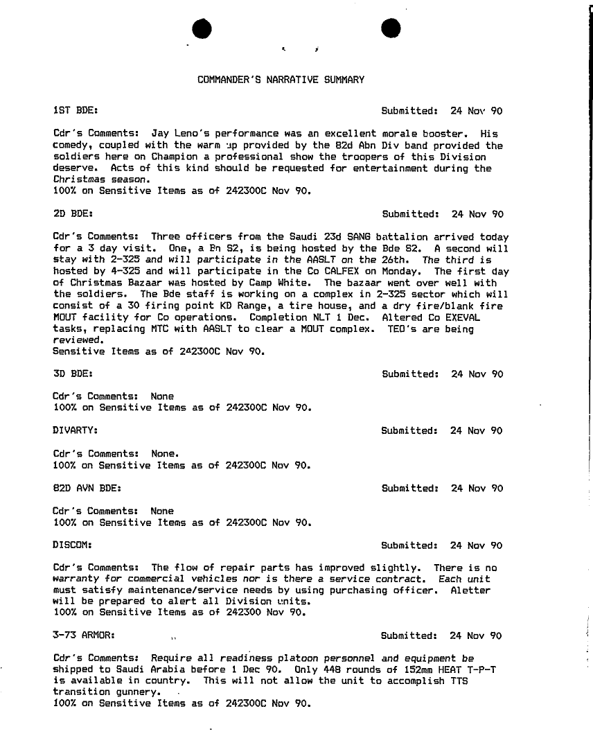 Document 75 f:/Week-18/BX000014/COMMAND REPORTS NOV 92 - 8/commanders narrative summaries nov 90:06079615285229