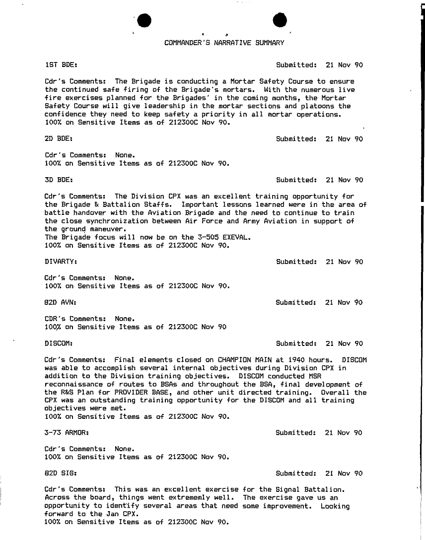 Document 75 f:/Week-18/BX000014/COMMAND REPORTS NOV 92 - 8/commanders narrative summaries nov 90:06079615285229