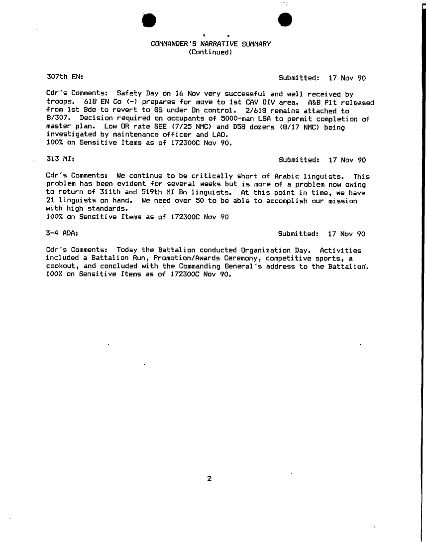 Document 75 f:/Week-18/BX000014/COMMAND REPORTS NOV 92 - 8/commanders narrative summaries nov 90:06079615285229