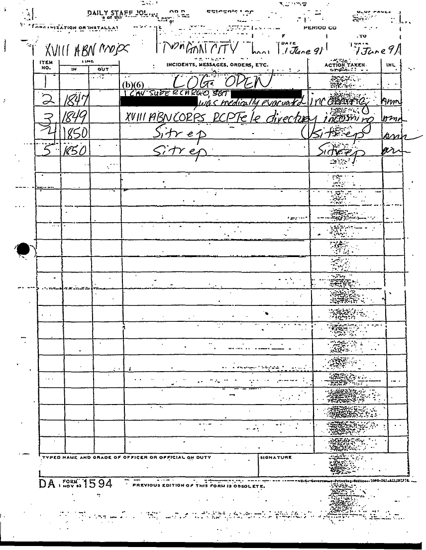 Document 3 f:/Week-17/BX000016/DUTY LOG REAR CP G3 1 JUN 91/daily staff journal log:06079615285212
