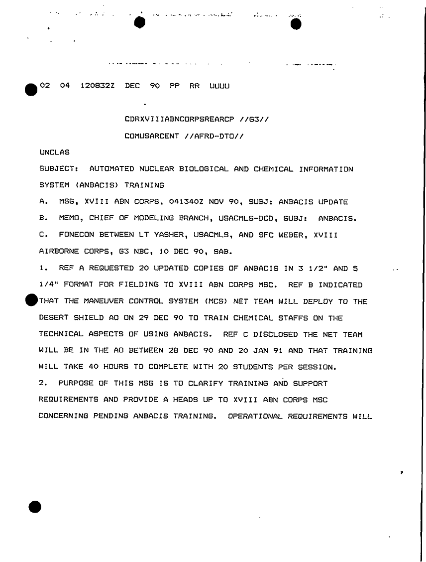 Document 4 f:/Week-15/BX000052/DUTY LOG G3 1-15 DEC 90 CONT/automated nuclear biological chemical info sys t:06079615285214